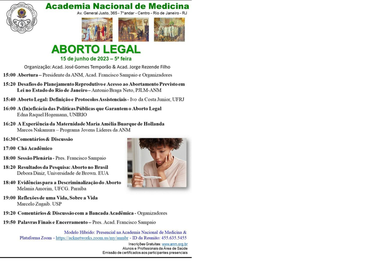 Academia Nacional de Medicina promove o evento "Aborto Legal", em formato híbrido.