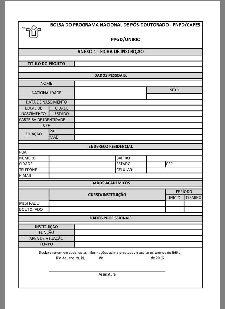 Anexo - Formulário de inscrição