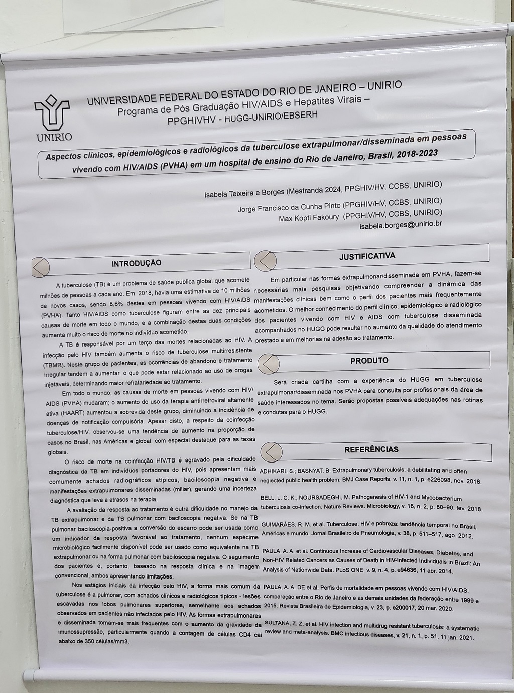 ASPECTOS CLÍNICOS, EPIDEMIOLÓGICOS E RADIOLÓGICOS DA TUBERCULOSE EXTRAPULMONAR/DISSEMINADA EM PESSOAS VIVENDO COM HIV/AIDS (PVHA) EM UM HOSPITAL DE ENSINO DO RIO DE JANEIRO, BRASIL, 2018-2023. (Isabela Teixeira e Borges)