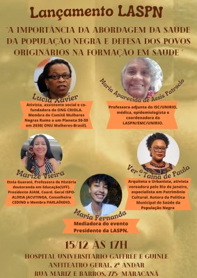 Para lançamento da Liga será realizado em 15/12 a partir das 17h, um evento tendo como convidadas: a orientadora da Liga; Lucia Xavier, ativista e assistente social co-fundadora da ONG Criola; Marize Vieira, etnia guarani, professora de história , doutoranda em educação e componente do CEDIND além de Tainá de Paula vereadora da cidade do Rio de Janeiro e autora do projeto da Politica Municipal de Saúde da População Negra.