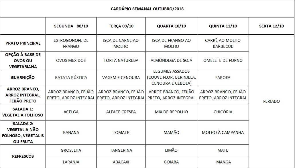 Você está aqui: Página Inicial / Nutricao-prae-corrigido / Cardápios RE / Cardápios RE PUPO / 08-10 A 12-10-18
