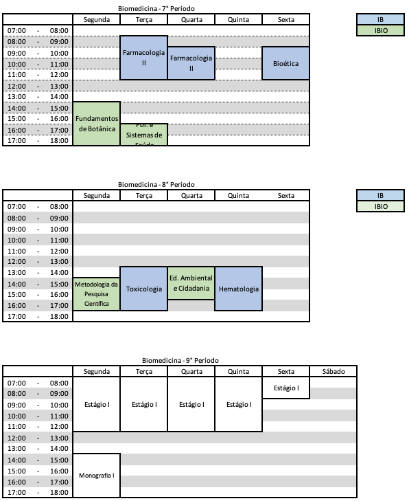 Grade de Horários para 2025- 2º Semestre