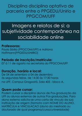A secretaria do PPGCOM informou que os alunos do PPGEdu eles permitirão fazer a inscrição por email, bastando que o aluno envie anexada uma declaração de que é aluno do PPGEDU constando nome e matrícula dizendo que desejam cursar a disciplina com um carimbo que pode ser da secretaria. O email da secretaria do PPGCOM para informar aos alunos é esse: secretariappgcom@vm.uff.br