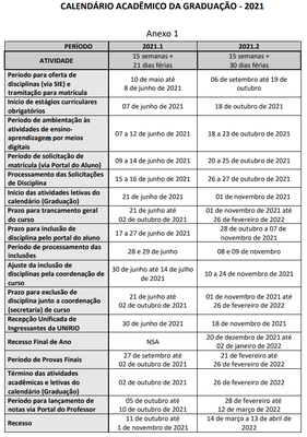 Calendário Acadêmico 2026
