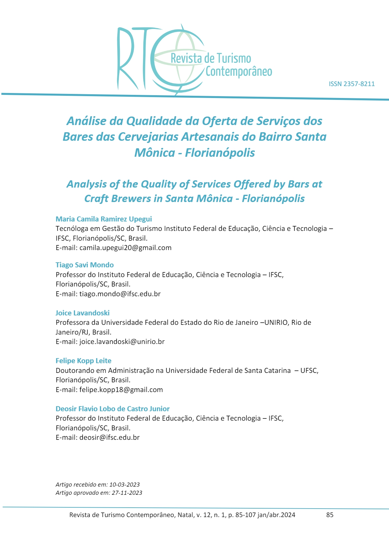 Vista do Análise da Qualidade da Oferta de Serviços dos Bares das Cervejarias Artesanais do Bairro Santa Mônica - Florianópolis