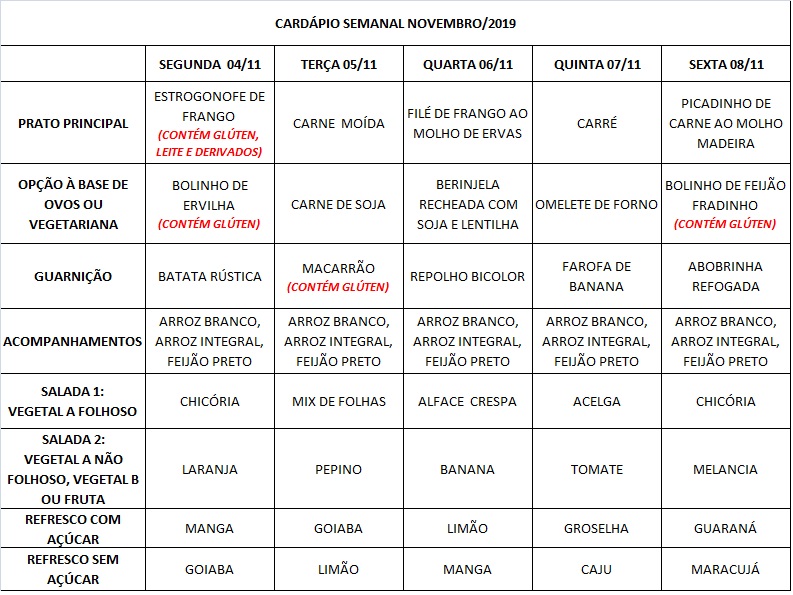 Você está aqui: Página Inicial / Nutrição PRAE(erro) / Cardápios RE PUPO / 04-11 A 08-11-19
