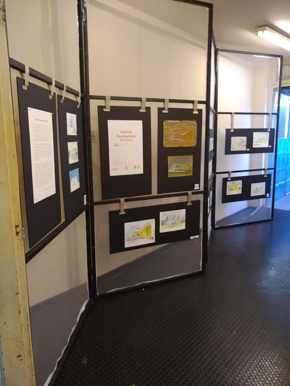 SECOND THEATRE ARCHITECTURE EXHIBITION - FROM RENAISSANCE TO THE 21st-CENTURY A segunda versão da exposição bilíngue sobre Arquitetura Teatral do Renascimento até a Contemporaneidade ampliou muito o escopo daquela realizada em 2012, visto que foram acrescidas as investigações e maquetes de inúmeros teatros dos séculos XX e XXI - empreendida desde 2014 - decorrentes da 7ª etapa da pesquisa Estudos do Espaço Teatral, cadastrada no CNPq, desenvolvida desde 2014 pelo Laboratório de Estudos do Espaço Teatral e Memória Urbana - LEG T5. Os verbetes e os estudos sobre os teatros acrescidos foram exibidos em novos painéis revelando espaços inusitados, englobando exemplos europeus recentes (Ópera Bastille e The Shed), mas também, em especial, teatros fluminenses do século XXI, com destaque para dois teatros projetados por Oscar Niemeyer (Raul Cortez e Popular de Niterói), o teatro do SESC Jacarepaguá, o teatro Imperator e o flexível teatro Tom Jobim. A exposição bilíngue, com curadoria da Profa. Evelyn Furquim Werneck Lima, foi montada no Espaço Cultural do Centro de Ciências Humanas da Unirio e atraiu grande quantidade de visitantes interessados na apreciação das maquetes elaboradas pelos pesquisadores do Laboratório de Estudos do Espaço Teatral e Memória Urbana sob a supervisão de Lima. Os verbetes foram retirados de artigos e livros publicados pela curadora em épocas distintas e traduzidos também para o inglês, fato que permitiu que os muitos participantes estrangeiros também usufruíssem das pesquisas. Vista do setor de teatros projetados nos séculos XX e XXI. (©Francisco Leocádio)