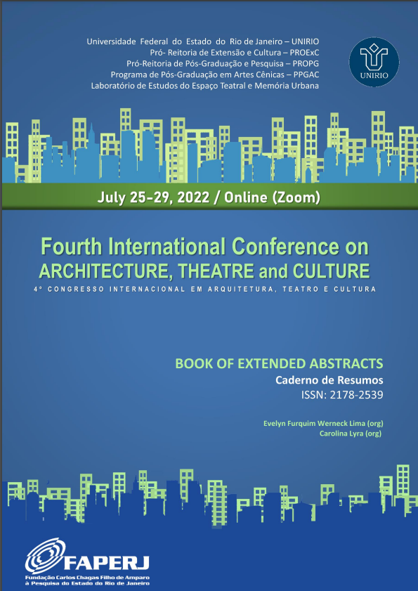 4º Congresso Internacional Arquitetura, Teatro e Cultura 25 a 29 de Julho de 2022 (online) https://arquiteturateatroecultura.wordpress.com/