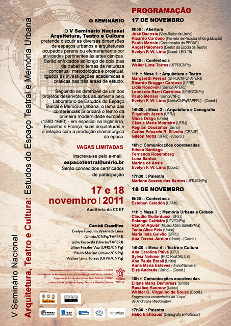 V SEMINÁRIO NACIONAL ARQUITETURA TEATRO E CULTURA - 17 e 18/11/2011