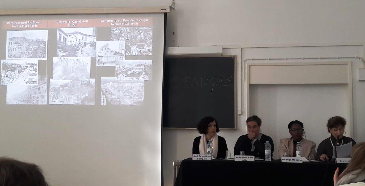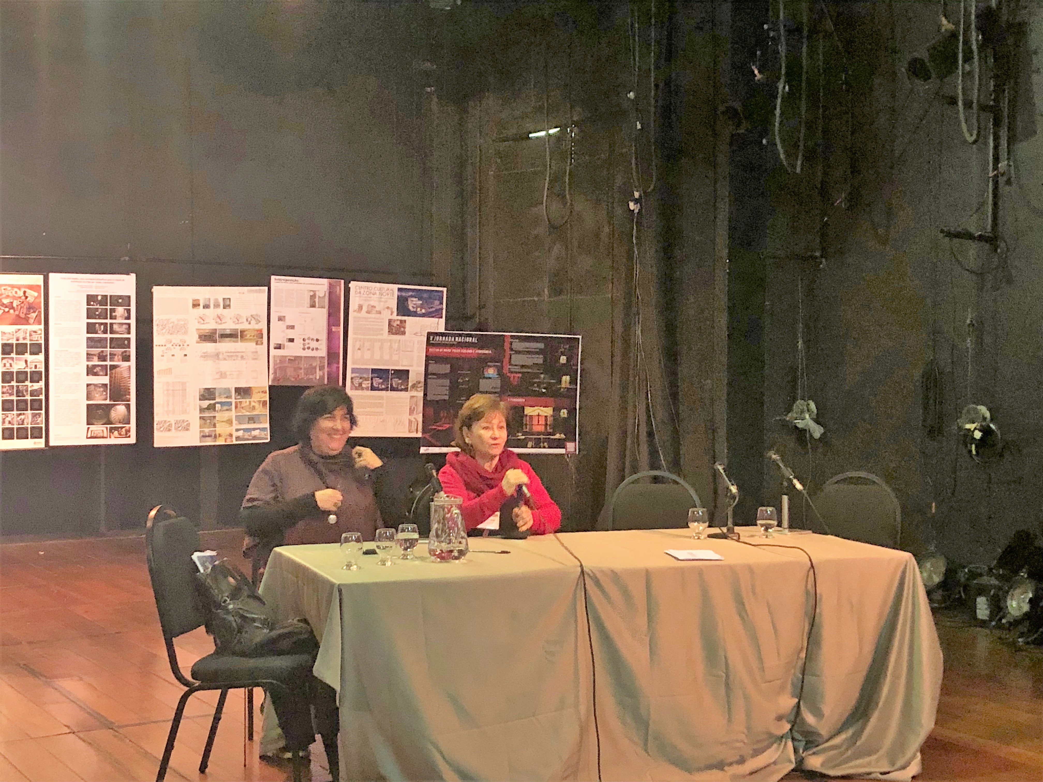 Conferência da Professora Juliet Rufford da Universidade de Exeter (©Sara Maranhão) Conferência da Profa. Dorita Hannah da Universidade da Tasmânia (©Sara Maranhão) Conferência da Profa. Cristina Grazioli(©Luana Prado) Conferência Prof. Helder Maia da ESMAE do Politécnico do Porto (©Luana Prado) Conferência do Arquiteto João Calafate da Fábrica Arquitetura e Universidade Santa Úrsula. (©Sara Maranhão) Conferência do cenógrafo e professor Helio Eichbauer da Escola de Artes Visuais (©Sara Maranhão) Além do sucesso das Conferências, as dez Mesas Redondas – que também foram apresentadas no auditório magno do Centro de Ciências Exatas e Tecnológicas da Unirio, foram também muito concorridas, em especial a Mesa “Architecture and Theatre I “, da qual participaram colegas ilustres, como a Professora Cristiane Duarte que foi a mediadora, a Professora Andrea Borde, a Professora Niuxa Drago e a Professora Evelyn Lima, entre outros que palestraram no Congresso. Mesa Redonda Architecture and Theatre I, da direita para a esquerda, Profa. Andrea Borde (PROURB), Profa. Niuxa Drago (FAU-UFRJ), Profa Cristiane Duarte (PROARQ) e Profa. Evelyn Lima (Unirio/LEG T5). (©Sara Maranhão) A Mesa Redonda Architecture and Theatre II contou com a profa Laura Figueiredo ( Artes/UFRN), com a Profa Maria Cristina Cabral (PROURB/UFRJ), a Profa Fabíola Zonno (FAU/UFRJ) e com a mediação da Profa Evelyn Lima (Unirio). (©Sara Maranhão)