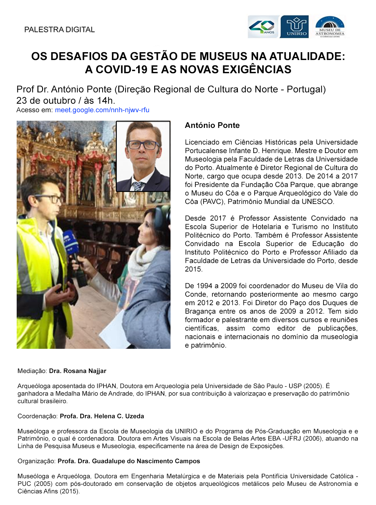 PALESTRA DIGITAL - OS DESAFIOS DA GESTÃO DE MUSEUS NA ATUALIDADE: A COVID-19 E AS NOVAS EXIGÊNCIAS