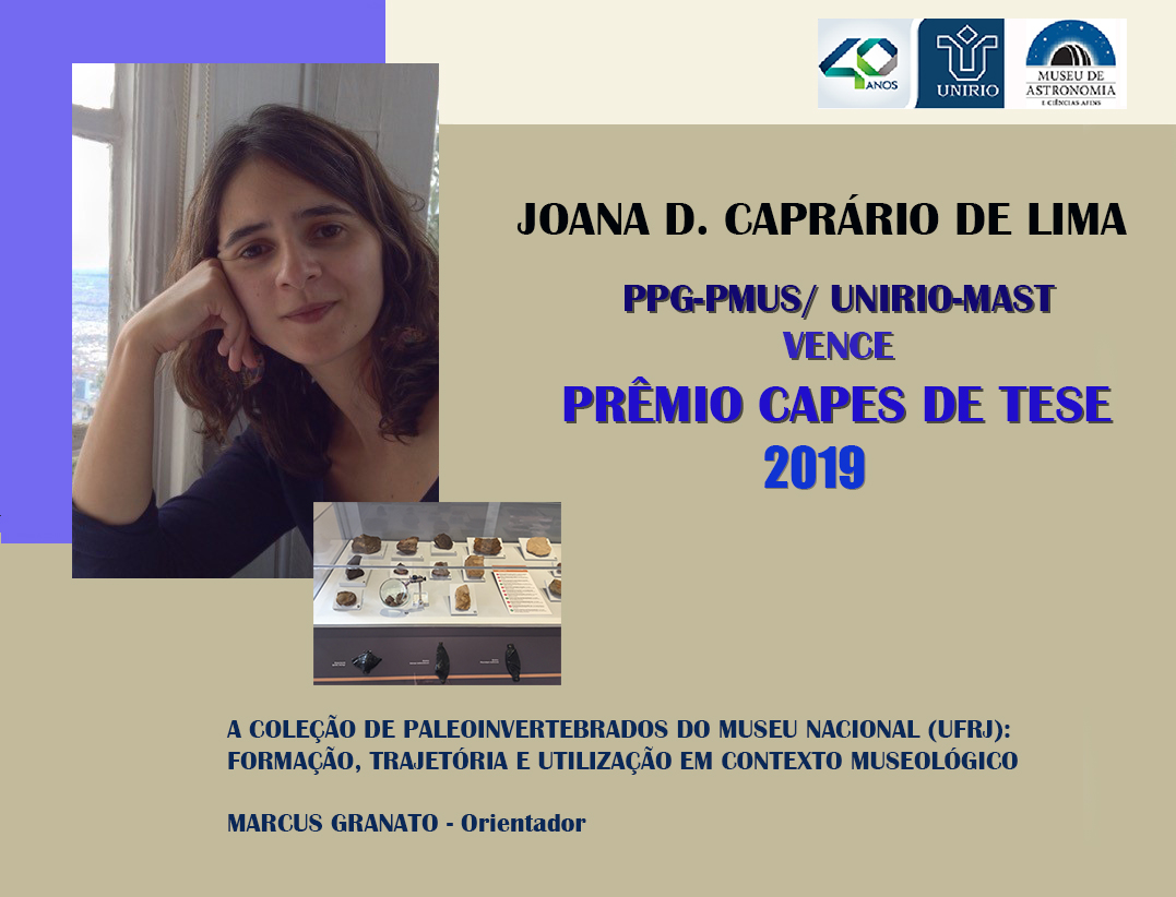 O PPG-PMUS (UNIRIO / MAST) FELICITA A DOUTORA JOANA DAVID CAPRÁRIO DE LIMA, VENCEDORA DO PRÊMIO CAPES DE TESE 2019 e seu orientador MARCUS GRANATO