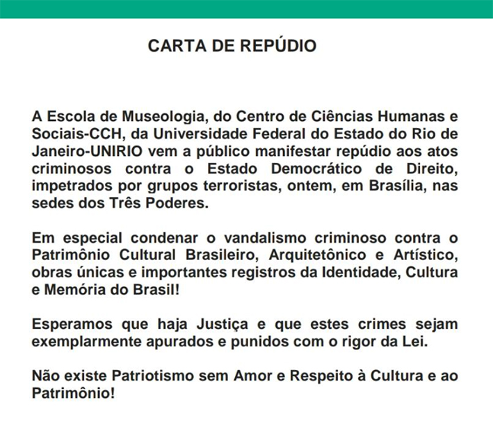 O Programa de Pós-Graduação em Museologia e Patrimônio (PPG-PMUS) da Universidade Federal do Estado do Rio de Janeiro (UNIRIO) em colaboração com o Museu de Astronomia e Ciências Afins (MAST) manifesta seu veemente repúdio ao Projeto de Lei (PL) nº 1007/2026, em tramitação na Câmara dos Deputados, de autoria do Deputado Capitão Augusto (PL/SP), que propõe a extinção do Instituto do Patrimônio Histórico e Artístico Nacional (IPHAN)A proposta evidencia um entendimento incompatível com os fundamentos contemporâneos da gestão do patrimônio cultural, amparados em evidências científicas, em normativas internacionais e nos dispositivos constitucionais brasileiros. Ao desconsiderar o acúmulo técnico e institucional consolidado, a medida compromete a continuidade de políticas públicas essenciais à salvaguarda da memória social.