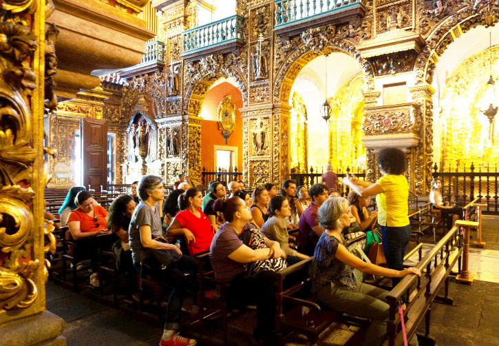 Foram visitadas as cidades de São João Del Rei, Tiradentes, Congonhas e Outro Preto, passando pelas igrejas históricas do Barroco e Rococó em Minas Gerais e os Museus da Liturgia (Tiradentes) e do Oratório (Ouro Preto). As visitas foram acompanhadas pelos professores convidados pelas Professoras do PPGPMUS, Prof.ª Drª. Teresa Scheiner e Prof.ª Dr.ª Heleza Uzeda.
