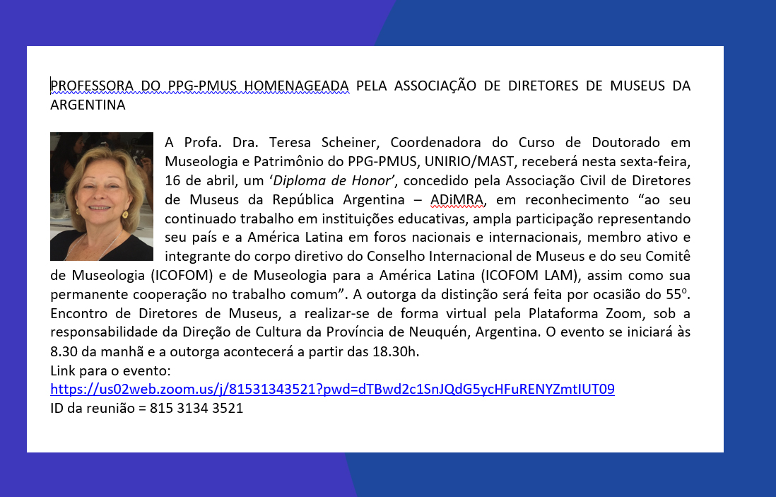 Programa de Pós Graduação em Museologia e Patrimônio – PPG-PMUS/UNIRIO-MAST
