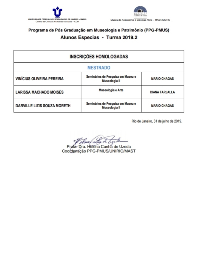 Programa de Pós-Graduação em Museologia e Patrimônio