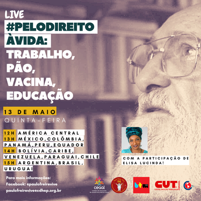 No mês de maio, a Campanha Latino-americana e Caribenha em Defesa do Legado de Paulo Freire dará espaço ao encontro de anúncio e denúncia em reflexão e defesa da luta da classe trabalhadora: #Pelodireitoàvida:Trabalho, pão, vacina e educação.