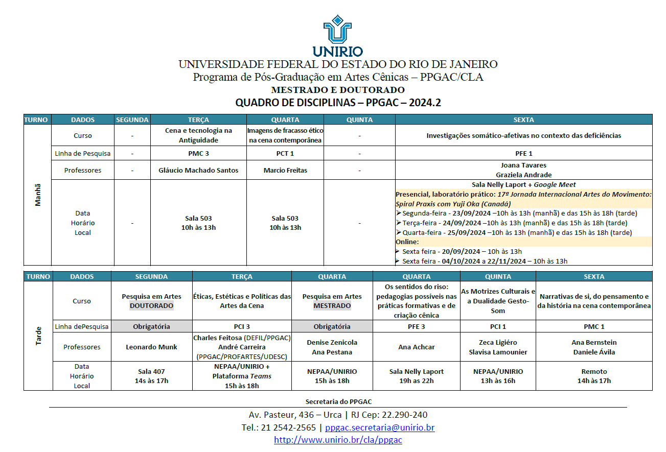 XXV Colóquio do Programa de Pós-Graduação em Artes Cênicas da UNIRIO