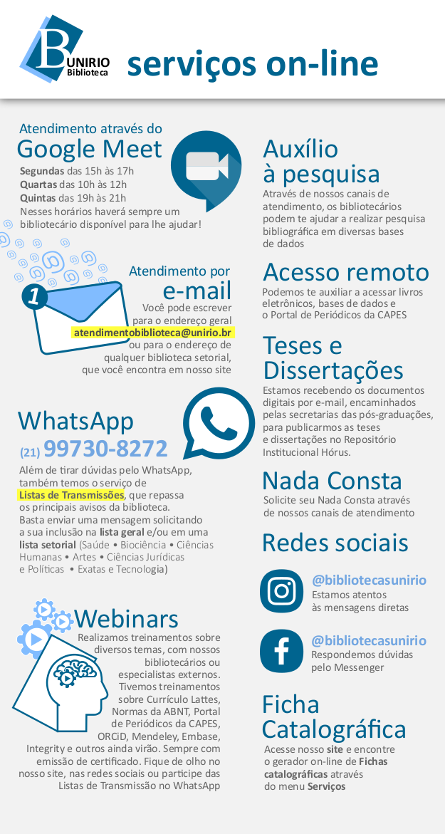 Durante a pandemia a biblioteca presta os seguintes serviços virtuais.