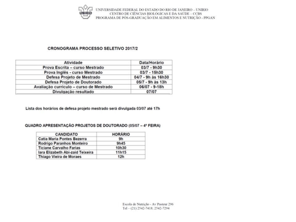 Programa de Pós-Graduação em Alimentos e Nutrição