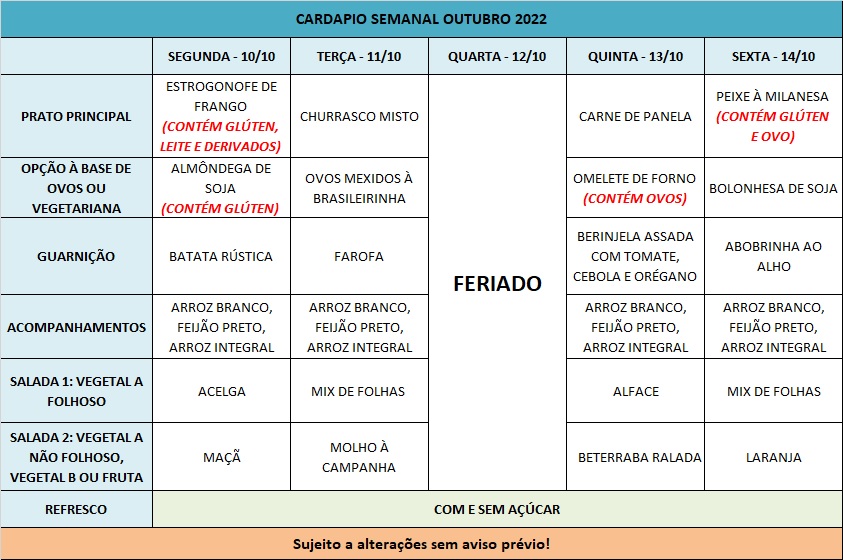 Você está aqui: Página Inicial / Nutrição PRAE(erro) / Cardápios PUPO 2022 / 10-10 a 14-10-22
