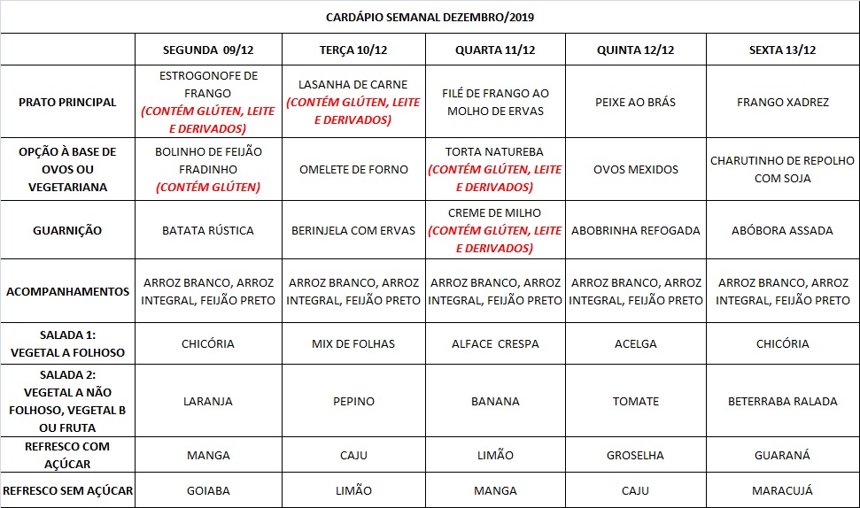 Você está aqui: Página Inicial / Nutrição PRAE(erro) / Cardápios RE PUPO / 09-12 a 13-12-19