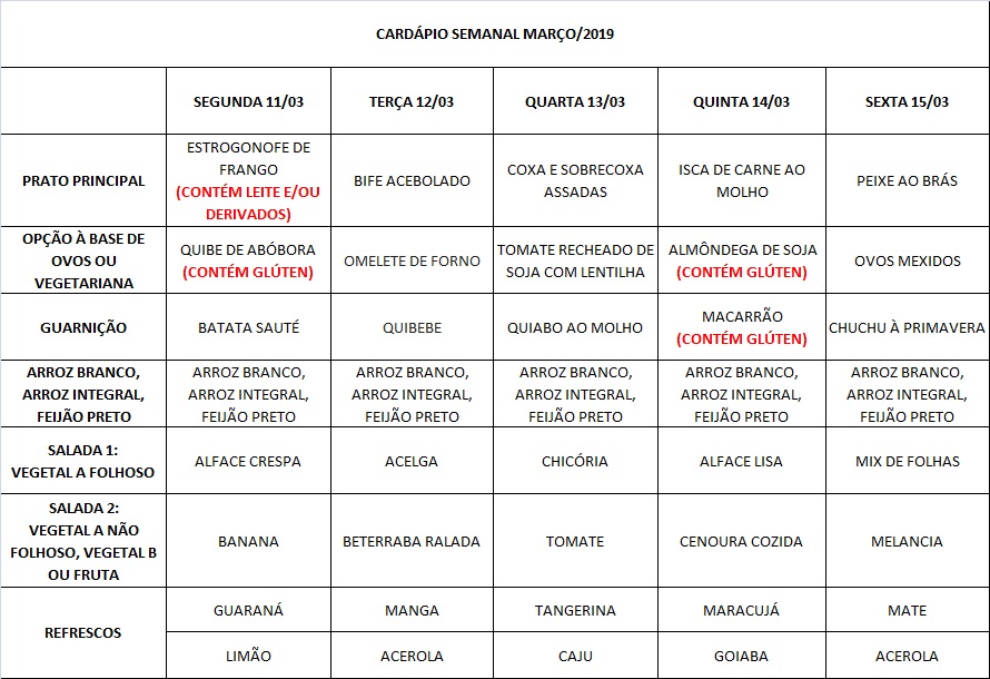 Você está aqui: Página Inicial / Nutrição PRAE(erro) / Cardápios RE PUPO / 11-03 A 15-03-19