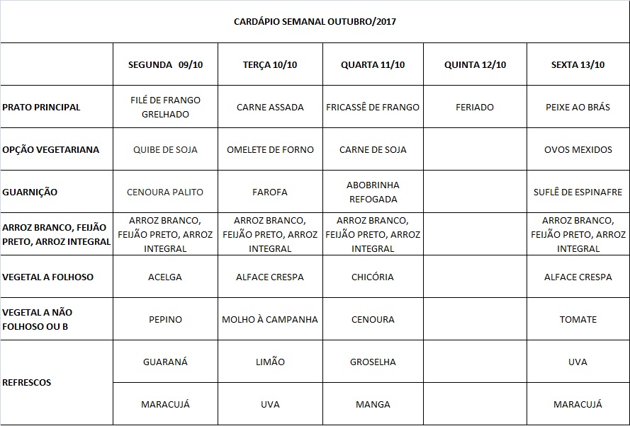 Você está aqui: Página Inicial / Nutricao-prae-corrigido / Cardápios RE / 09-10 a 13-10-17