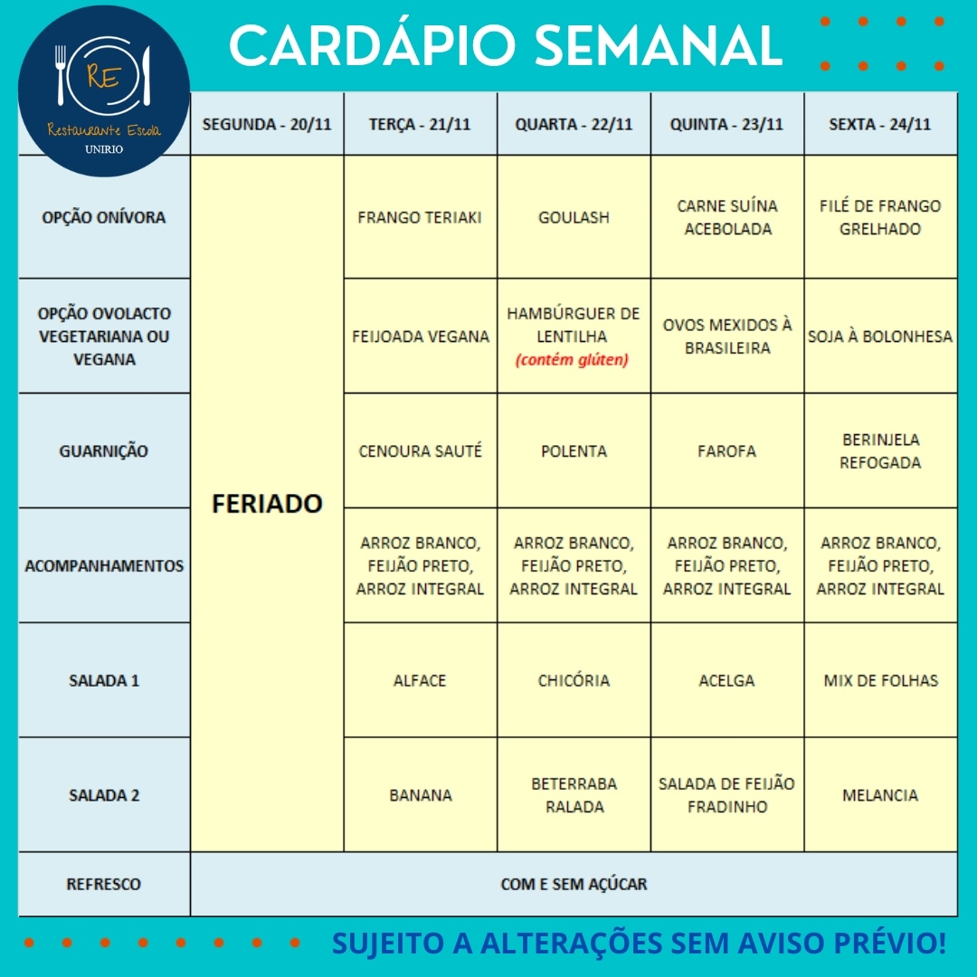 Você está aqui: Página Inicial / Nutrição PRAE(erro) / Cardápios PUPO 2023 / 21-11 a 24-11-23