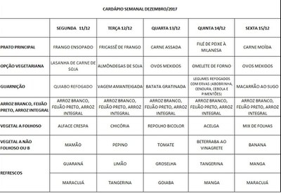 Você está aqui: Página Inicial / Nutrição PRAE(erro) / Cardápios RE PUPO / 11-12 A 15-12-17