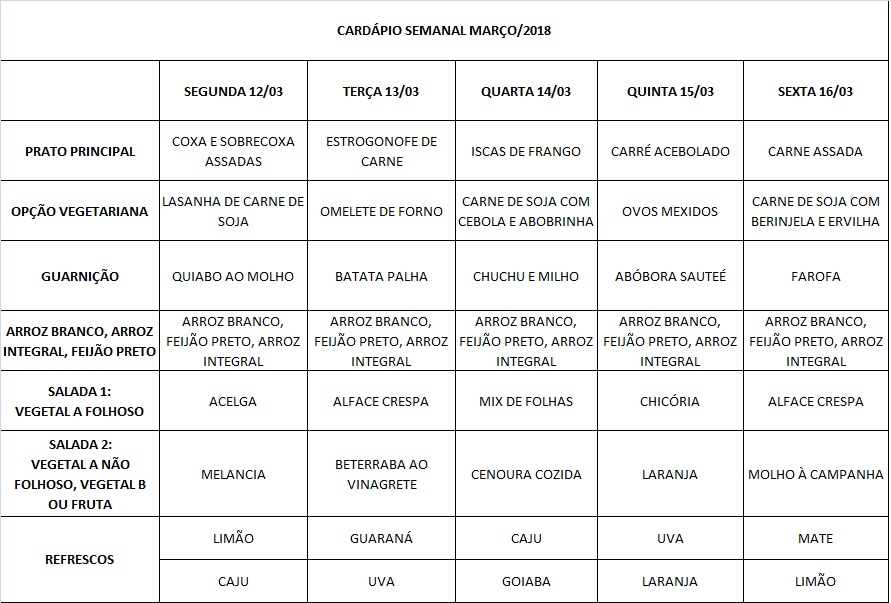 Você está aqui: Página Inicial / Nutrição PRAE(erro) / Cardápios RE PUPO / 12-03 A 16-03-18 1