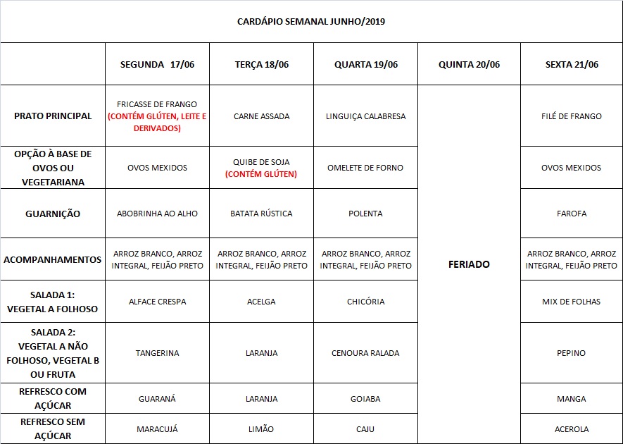 Você está aqui: Página Inicial / Nutrição PRAE(erro) / Cardápios RE PUPO / 17-06 a 21-06-19