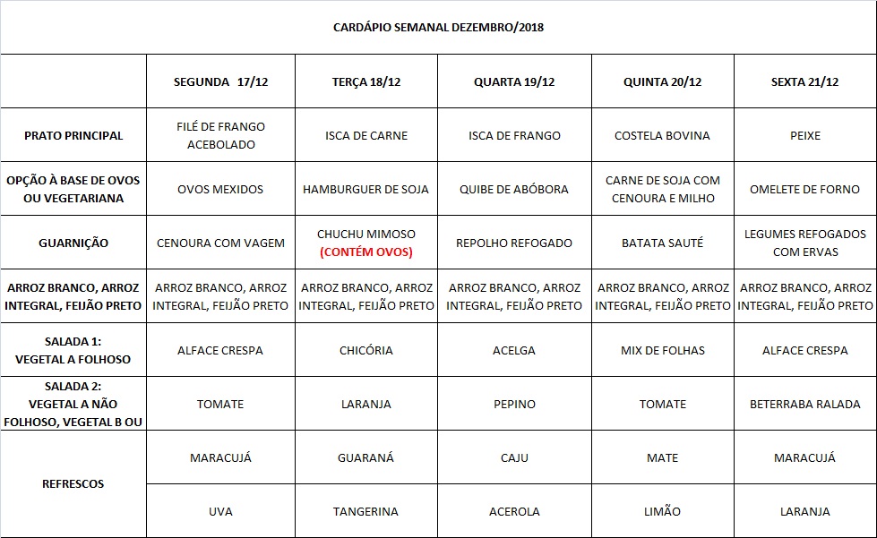 Você está aqui: Página Inicial / Nutrição PRAE(erro) / Cardápios RE PUPO / 17-12 A 21-12-18