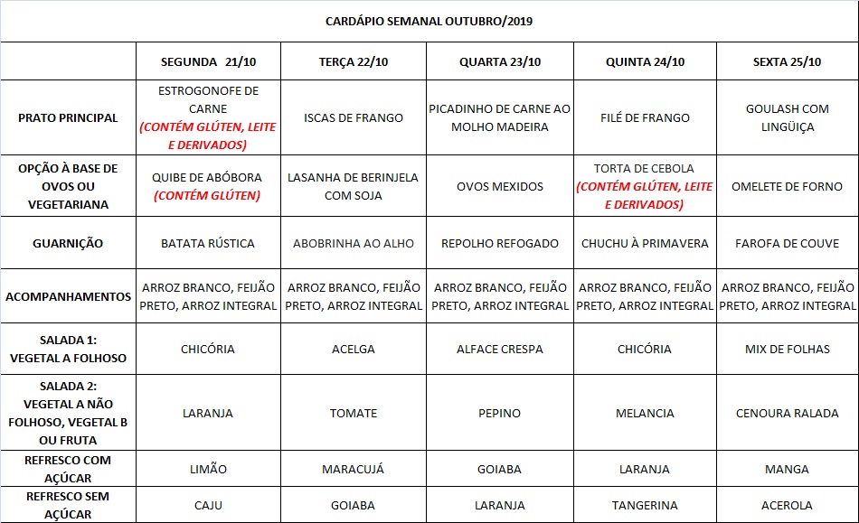 Você está aqui: Página Inicial / Nutrição PRAE(erro) / Cardápios RE PUPO / 21-10 a 25-10-19