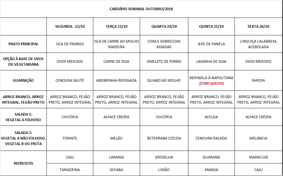 Você está aqui: Página Inicial / Nutrição PRAE(erro) / Cardápios RE PUPO / 22-10 A 26-10-18