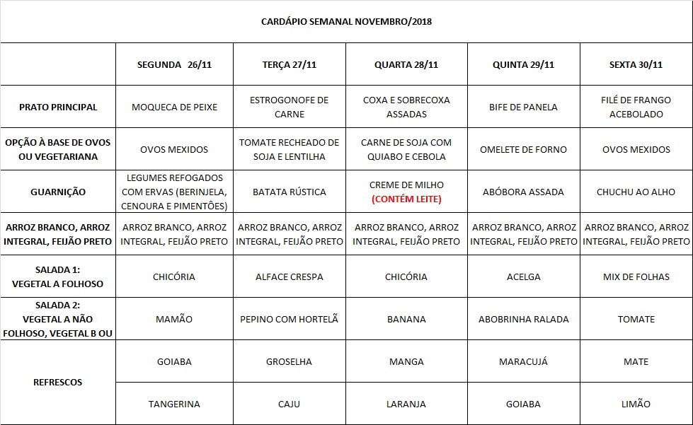 Você está aqui: Página Inicial / Nutrição PRAE(erro) / Cardápios RE PUPO / 26-11 a 30-11-18