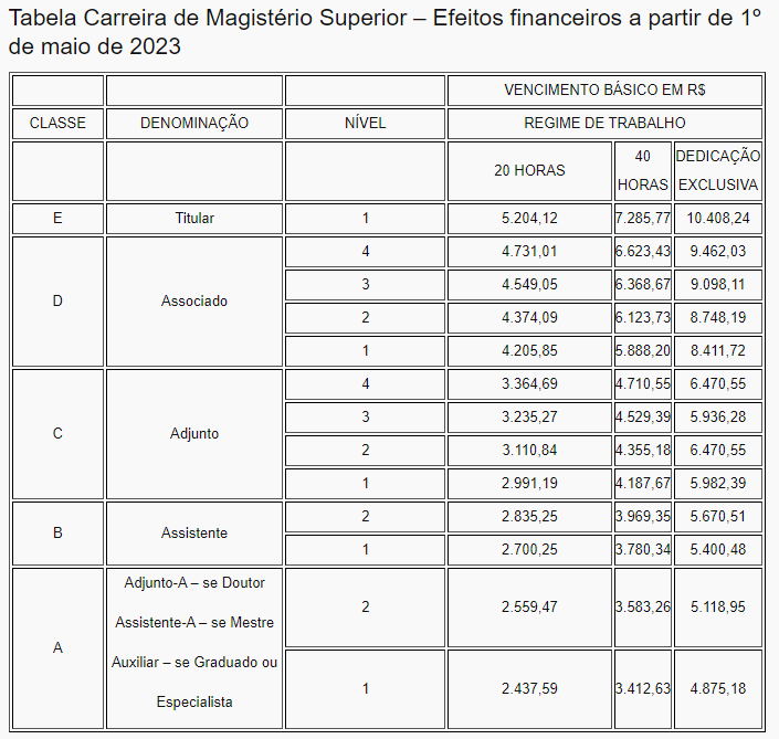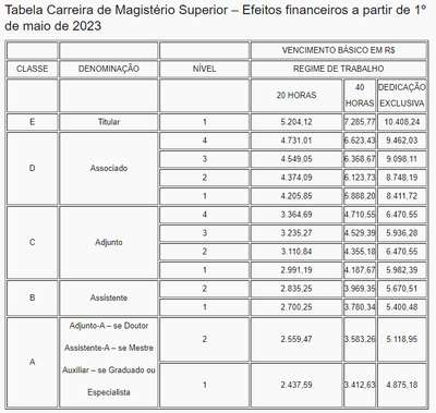 Quadros de Cargos e Carreiras (TAE e Docentes)