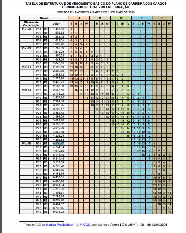 Quadros de Cargos e Carreiras (TAE e Docentes)