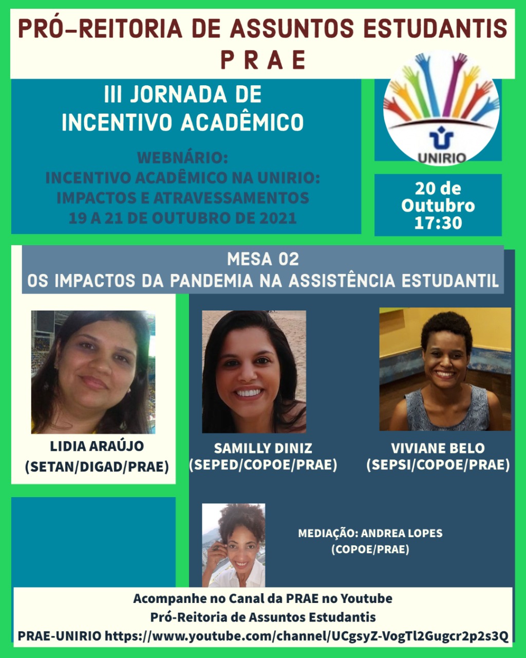 PRAE convida para a Mesa 02 da III JIA (Jornada de Incentivo Acadêmico) hoje às 17:30.