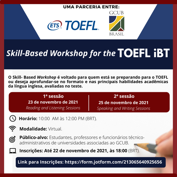 Inscrições abertas para o Skill-Based Workshop for the TOEFL iBT