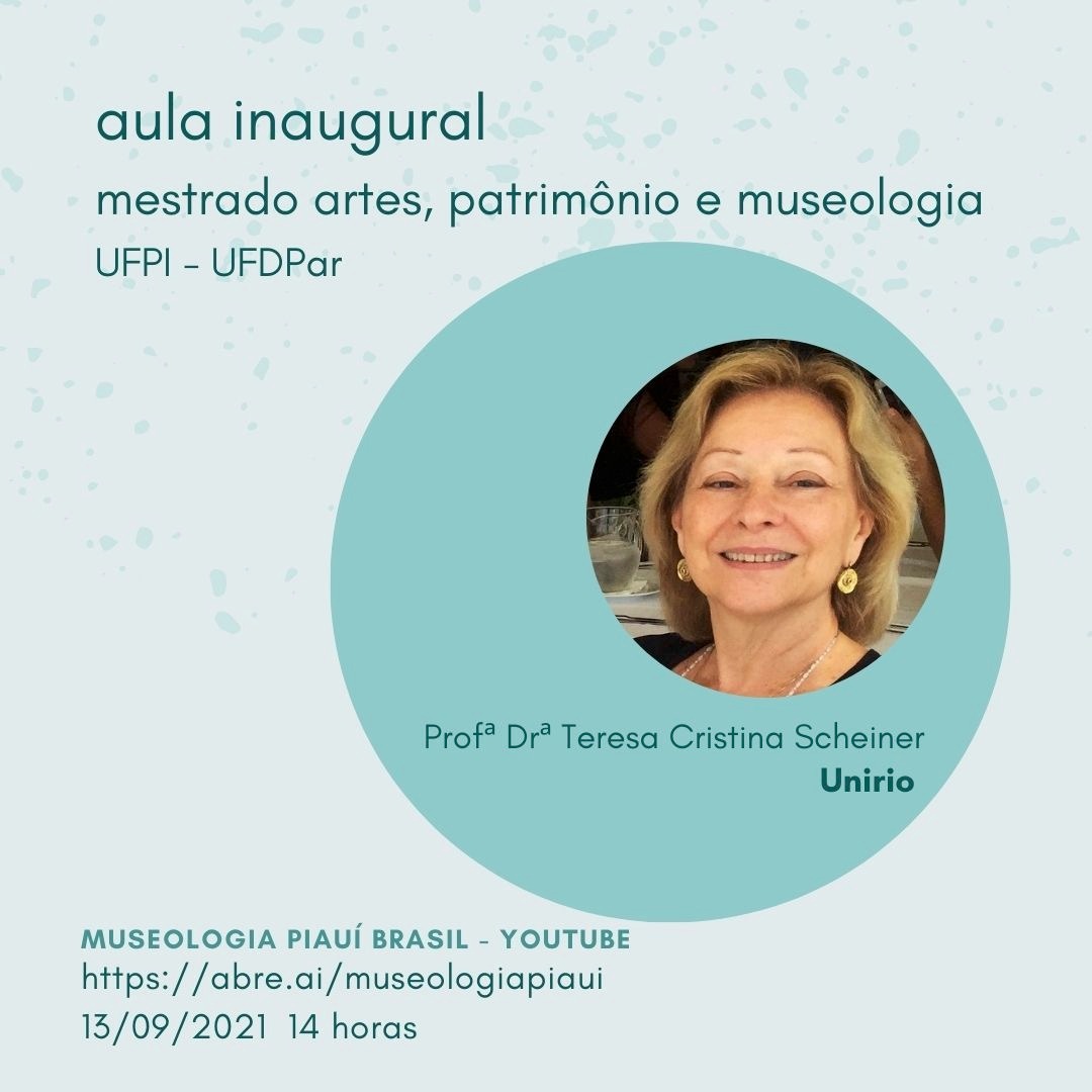 Aula inaugural do PPGAPM _ Museologia Piauí UFPI - UFDPar Proferida pela Profª Drª Teresa Cristina Scheiner , no Dia 13 de setembro de 2021 às 13h horário de Brasília, Brasil