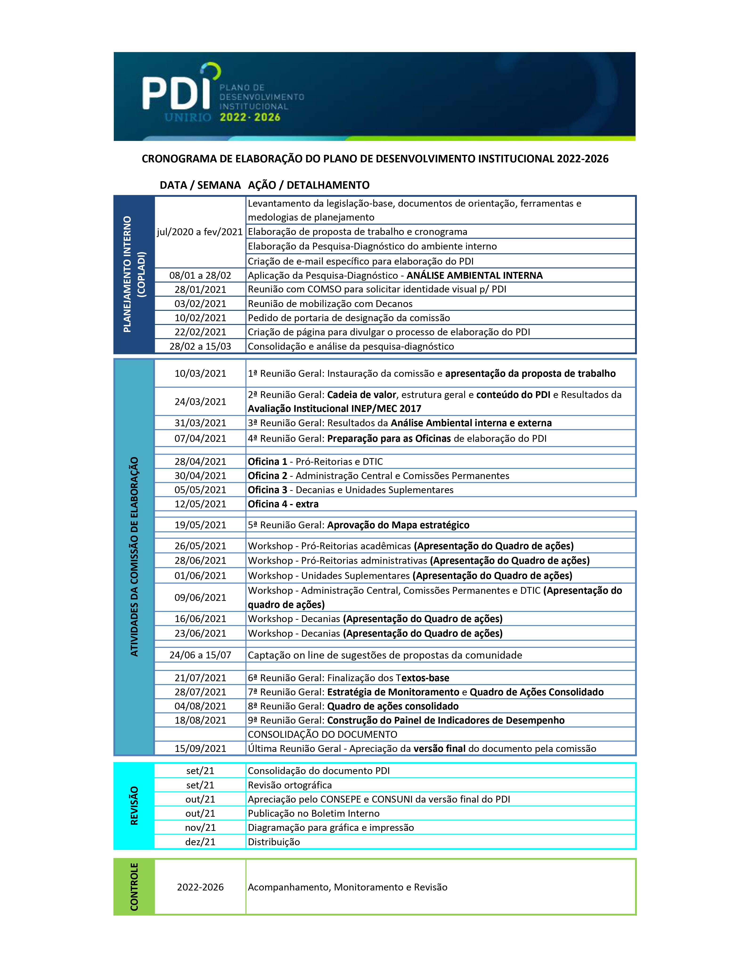 Você está aqui: Página Inicial / PDI 2022-2026 / PASTA APRESENTAÇÕES - PDI 2022-2026 / Cronograma