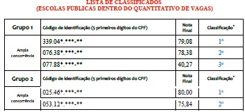 *A classificação final em cada lista leva em consideração o número de vagas ofertadas pelo polo para cada Grupo, definidas no edital complementar do Polo, bem como as orientações dos Artigos 1.4 a 1.6 do Edital Nacional.