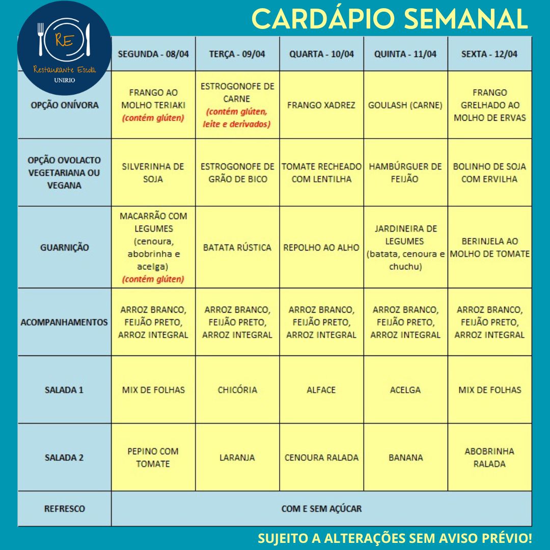 Você está aqui: Página Inicial / Nutrição PRAE(erro) / Cardápios PUPO 2024 / 08-04 a 12-04-24
