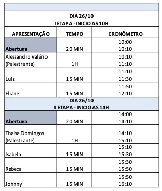 Horários e locais de apresentação