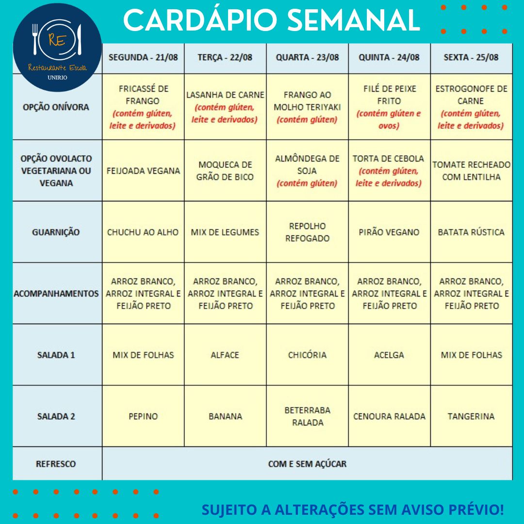 Você está aqui: Página Inicial / Nutrição PRAE(erro) / Cardápios PUPO 2023 / 21-08 a 25-08-23