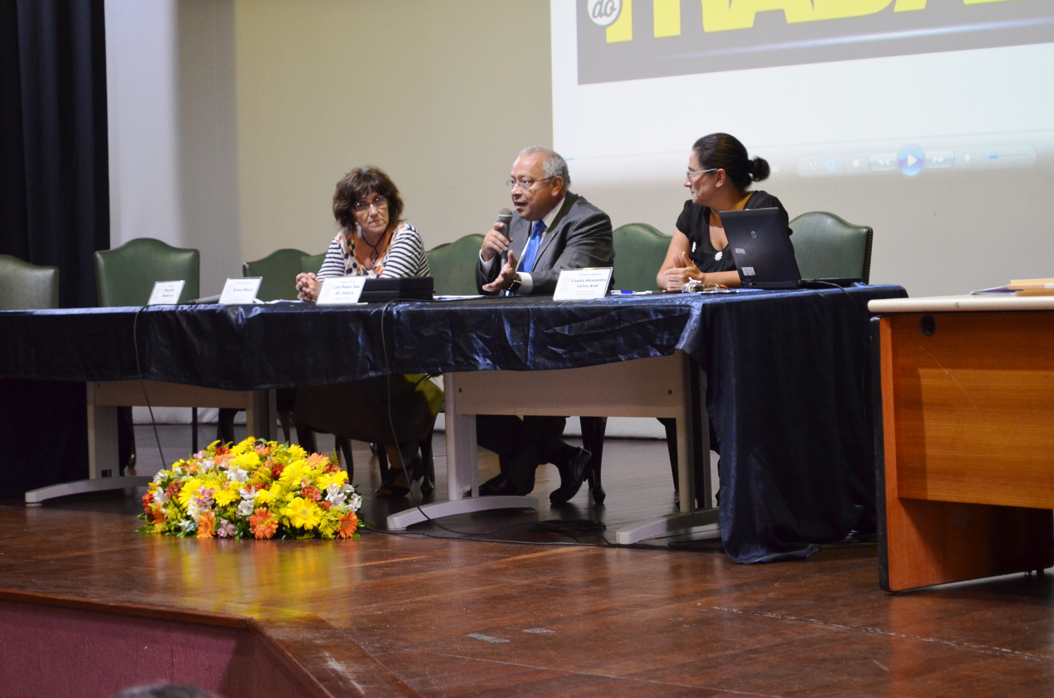 Mesa da cerimônia de entrega de certificados (Foto: Comso)