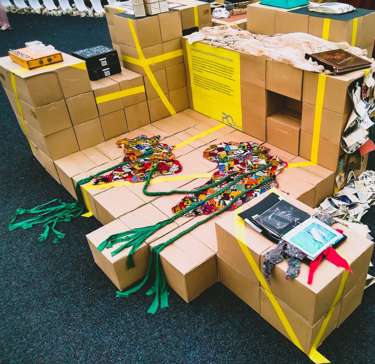 O LABORATÓRIO REPRESENTADO NA PQ19 TEMPORARY OPEN-AIR THEATRE AT UNIRIO – FINALISTA DA PERFORMANCE SPACE EXHIBITION O projeto da arquitetura e cenografia “Temporary Open-Air Theatre – UniRio” realizado pelos pesquisadores do Laboratório de Estudos do Espaço Teatral e Memória Urbana” e concebido e coordenado por Evelyn F.W. Lima foi finalista da mostra Performance Space Exhibition. Para o julgamento, o Júri solicitou o envio de um vídeo comprovando a eficácia do projeto, que foi selecionado para a exibição durante o período de 06 a 16 de outubro na Prague Quadrennial 2019. Foto do trabalho “Temporary Open-Air Theatre – Uni Rio”. ©Sara Fagundes ESPAÇO EXPOSITIVO QUADRIENAL DE PRAGA DE 2019 Da imaginação à realidade: espaços expositivos e a estética do improviso foi o trabalho desenvolvido coletivamente por pesquisadores do Laboratório de Estudos do Espaço Teatral e Memória Urbana, Carolina Lyra, Francisco Leocádio, Joana Lavallé e Sara Fagundes, e consistiu na concepção e montagem do espaço expositivo para abrigar a mostra dos Estudantes Brasileiros. O projeto foi aprovado em concurso realizado pela curadoria brasileira e avaliado pelos jurados Bia Junqueira, Marcos Flaksman e Walter Carvalho. O espaço foi construído a partir de 650 caixas de papelão, empilhadas, encaixadas e coladas, de forma a se adequar a cada um dos 20 projetos brasileiros exibidos. O trabalho foi bastante elogiado, sobretudo pela forma inusitada com que as caixas foram utilizadas, pela volumetria criada e por se construir a partir de três materiais simples e baratos, as caixas, cola branca e fita amarela.