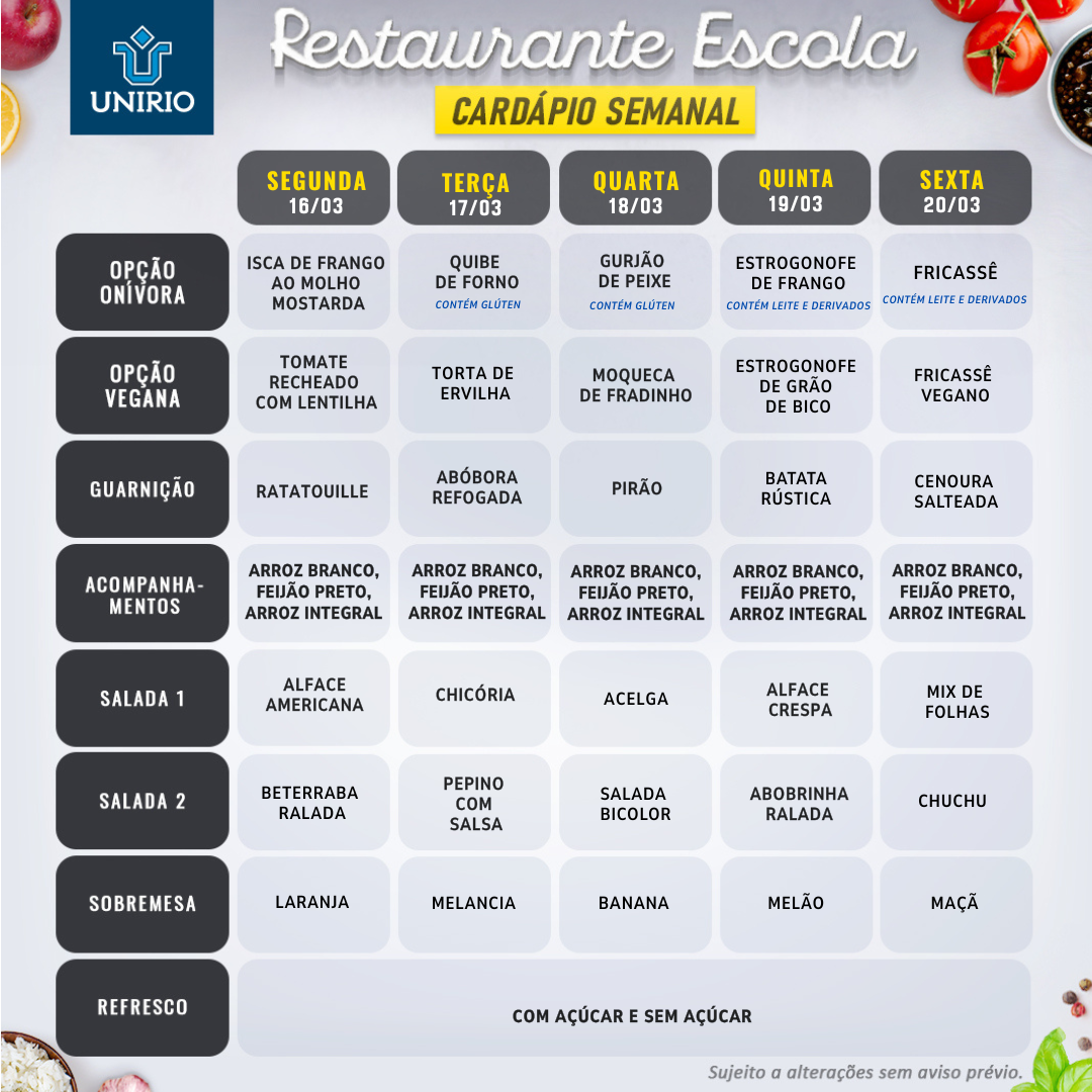 | 16/03/2026 | Cardápio do Restaurante Escola de 16 a 20/03/26 |