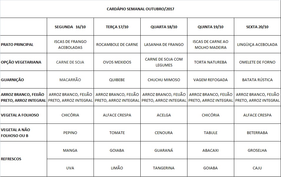Você está aqui: Página Inicial / Nutricao-prae-corrigido / Cardápios RE / 16-10 a 20-10-17